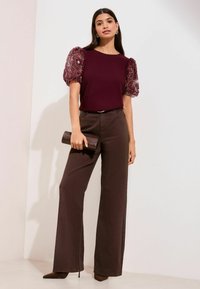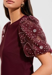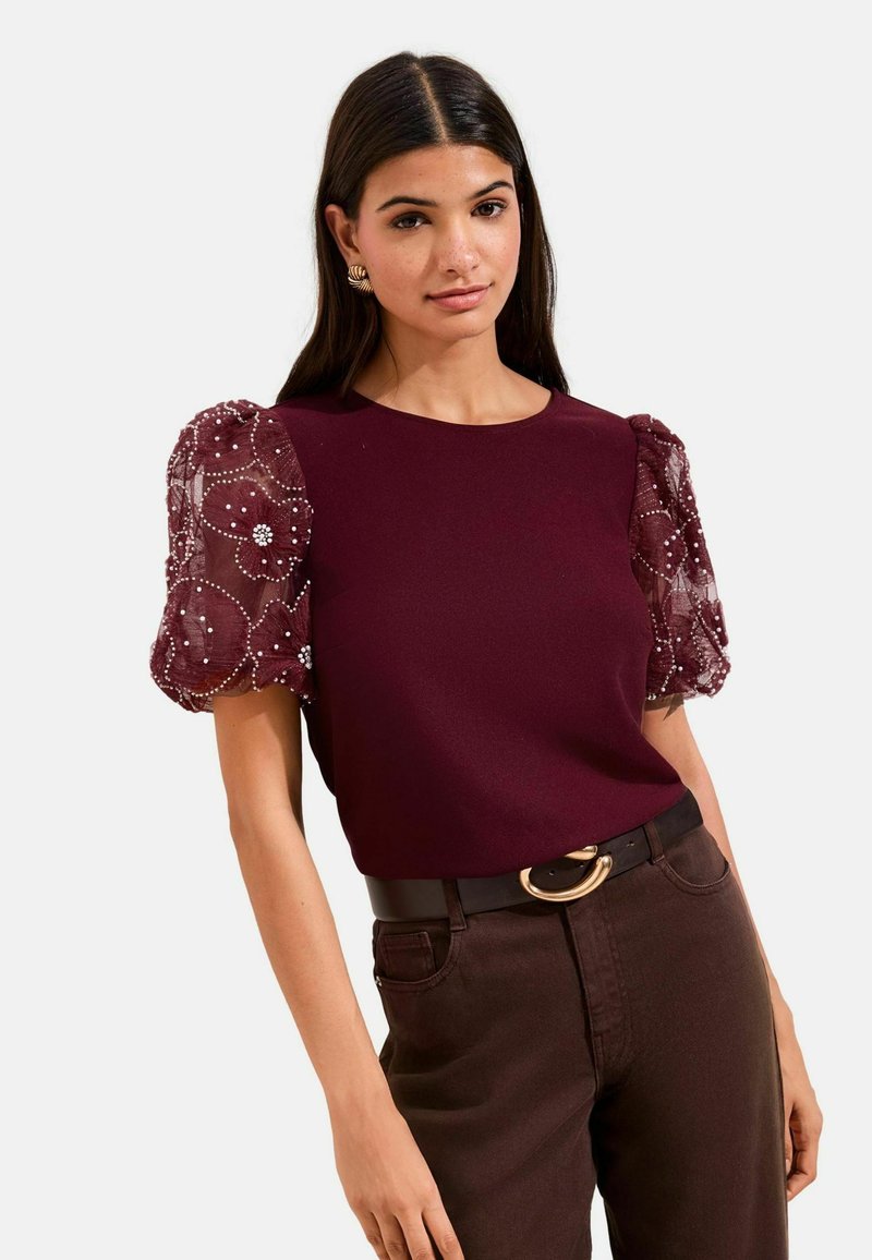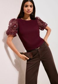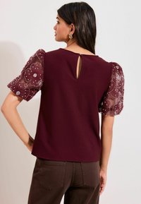 REGULAR FIT - ROSE DETAIL PUFF SLEEVE TOP . - Camicetta - burgundy