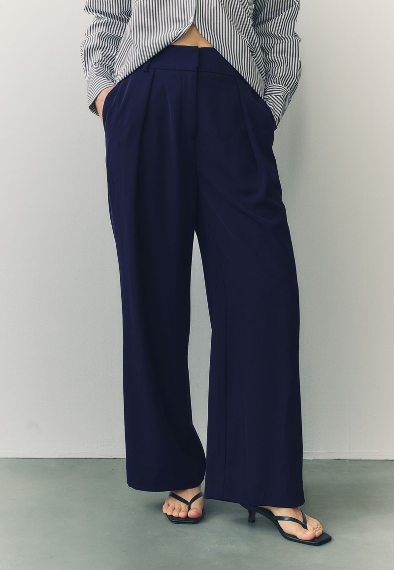 ELASTICATED BACK WIDE LEG - Pantaloni - navy