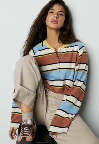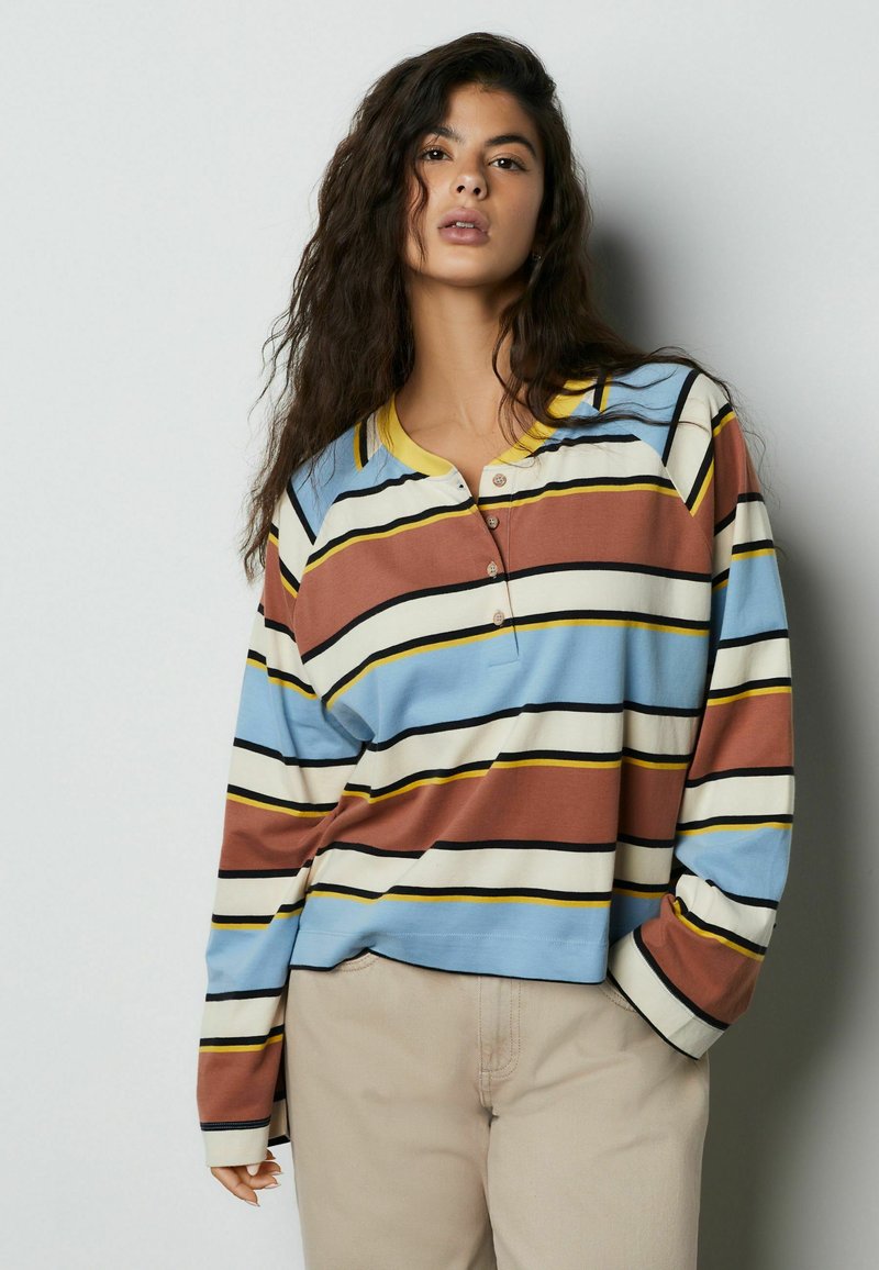 REGULAR FIT - LONG SLEEVE GRAPHIC HENLEY STRIPE - Maglietta a manica lunga - brown blue ecru yellow stripe