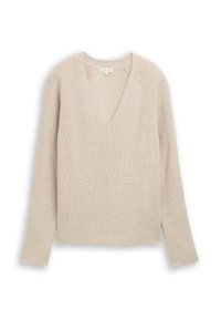PULLOVER MIT V-AUSSCHNITT - Maglione - dusty alabaster melange